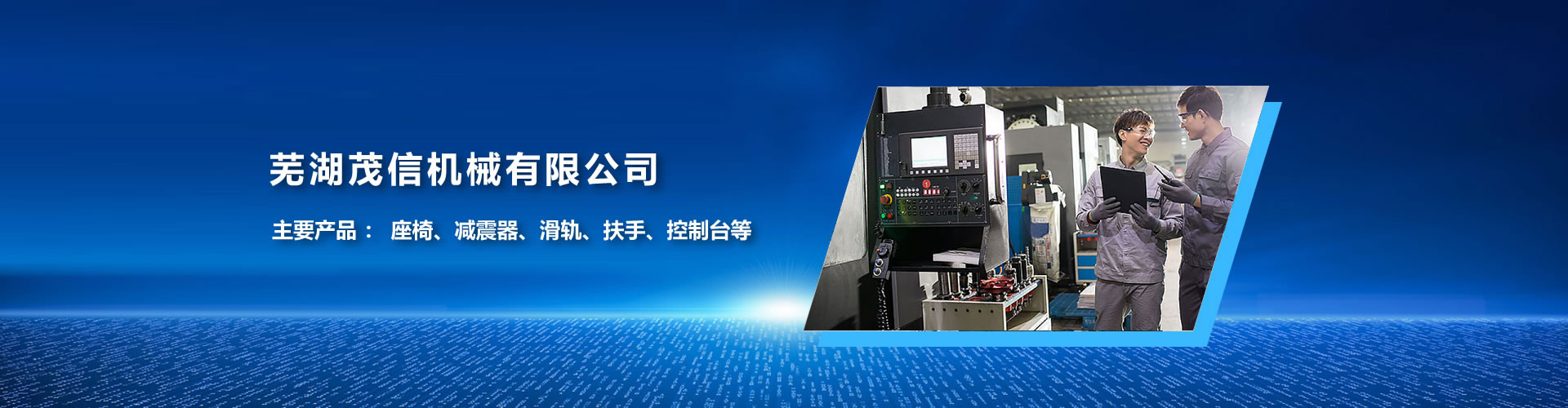 蕪湖茂信機(jī)械有限公司坐落于安徽省蕪湖市鳩江經(jīng)濟(jì)開(kāi)發(fā)區(qū)萬(wàn)春西路28號(hào),投資比率 :茂工業(yè)股份有限公司(日本), 60%,信昌集團(tuán)(臺(tái)灣),40%。營(yíng)業(yè)范圍 :設(shè)計(jì),生產(chǎn)和銷售建筑用座椅,農(nóng)業(yè)機(jī)械用座椅,汽車用座椅,特種座椅,機(jī)械零部件和汽車零部件。主要產(chǎn)品 : 座椅、減震器、滑軌、扶手、控制臺(tái)等。ISO9001 :2015: 2014年取得......